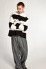 Long sleeve tee with ribbed neck. Black and white stripe. Oversized fit.