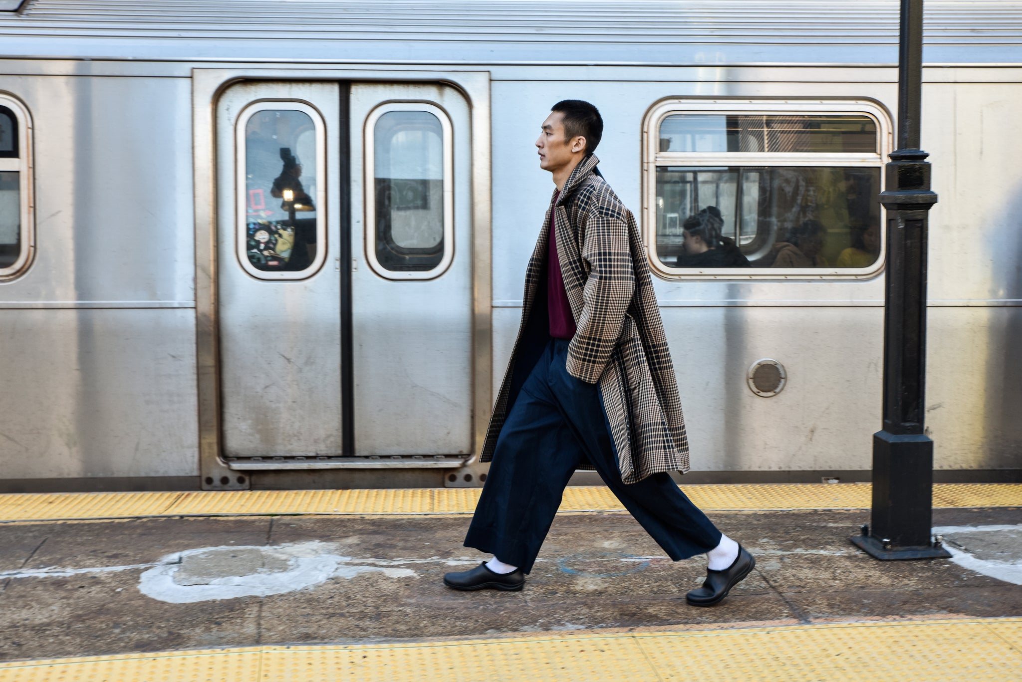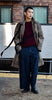 Wide leg, flat front trousers with wide leg hem. Zip closure. Back patch pockets. Cropped length.