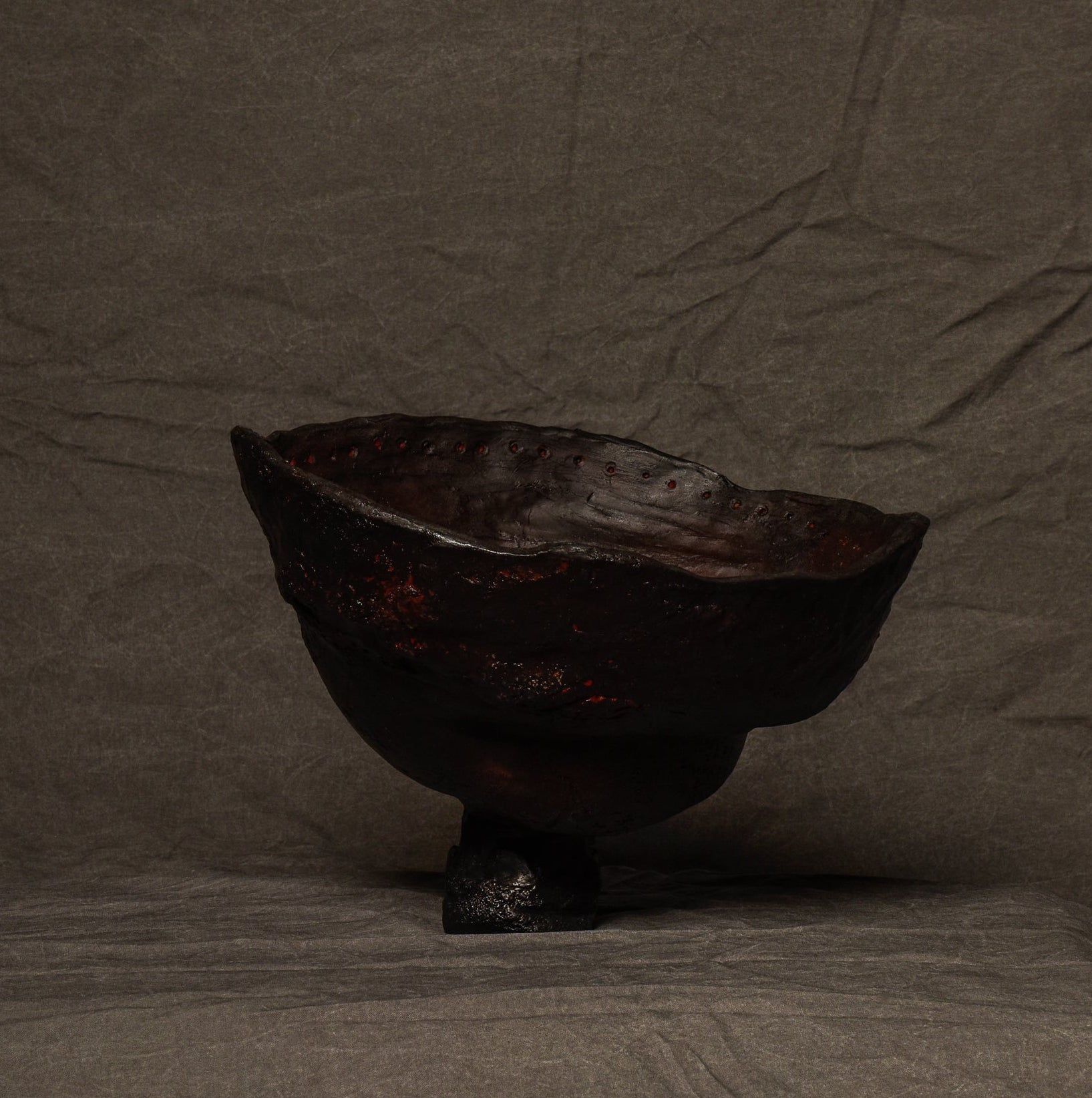 One of a kind, hand built stonewear sculpture / vessel by John Arsenault.